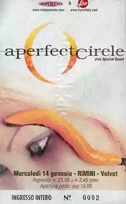Maynard is good, really good. He tears up his tank top, moves quite a bit (stage presence isn't stellar, in my humble opinion, but I don't think he cares much, actually), makes a few stupid jokes... Well, this leaves me a bit puzzled. Maybe you imagine that a musician with a "cult" aura, a good, talented, and particular musician, is also intelligent... but maybe it's not so. At least that's the impression I get ("Are we enjoying Italy, Jeordie? Are you enjoying us? Are we enjoying you? We are enjoying us!" Shut up and sing, come on.)