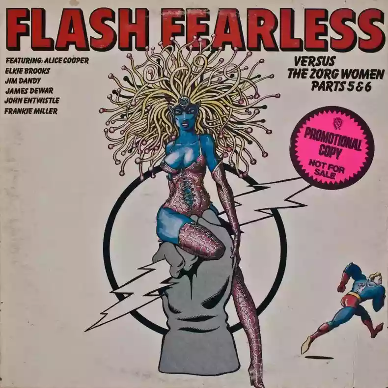 I am Salàd. I'm back here in a gap of time I have between one explosion and another of criminal behinds (I have a particularly busy schedule these days). I've grown fond of talking about rock musical projects centered on superheroes that have not been successful. The album I'm talking about this time was released at the end of 1974; evidently, the mid-70s was a good period for this bizarre musical genre made up of musicals doomed to failure. The superhero in question is the third Flash in the history of comics, the unluckiest one, the one I find most endearing. After the DC Flash in red super-suit and yellow lightning, and the nobler Flash Gordon, here is the "fearless" Flash, dealing with the lustful zorg women.