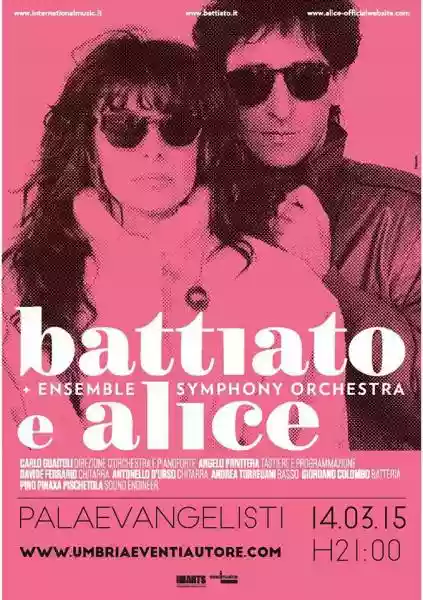 Just returned from the concert of Battiato and Alice held at the Palaevangelisti in Perugia. What can I say!? Despite being 70 years old, Battiato defies the passing of time and delivers a high-level event for his fans, myself included. He struggles at first, but soon gets into his stride and nothing can stop him. Alice, equally talented and vocally superb, doesn't quite leave the mark as her colleague does; her pieces aren't memorable, failing to carve themselves into the listener's memory and heart. Everything Franco sings, by contrast, remains etched in your mind, despite him singing in his famous falsetto and her, Alice, surpassing him in technique. This shows that often, it's not vocal technique that matters, but the atmosphere and the worlds that the vocal cords evoke.