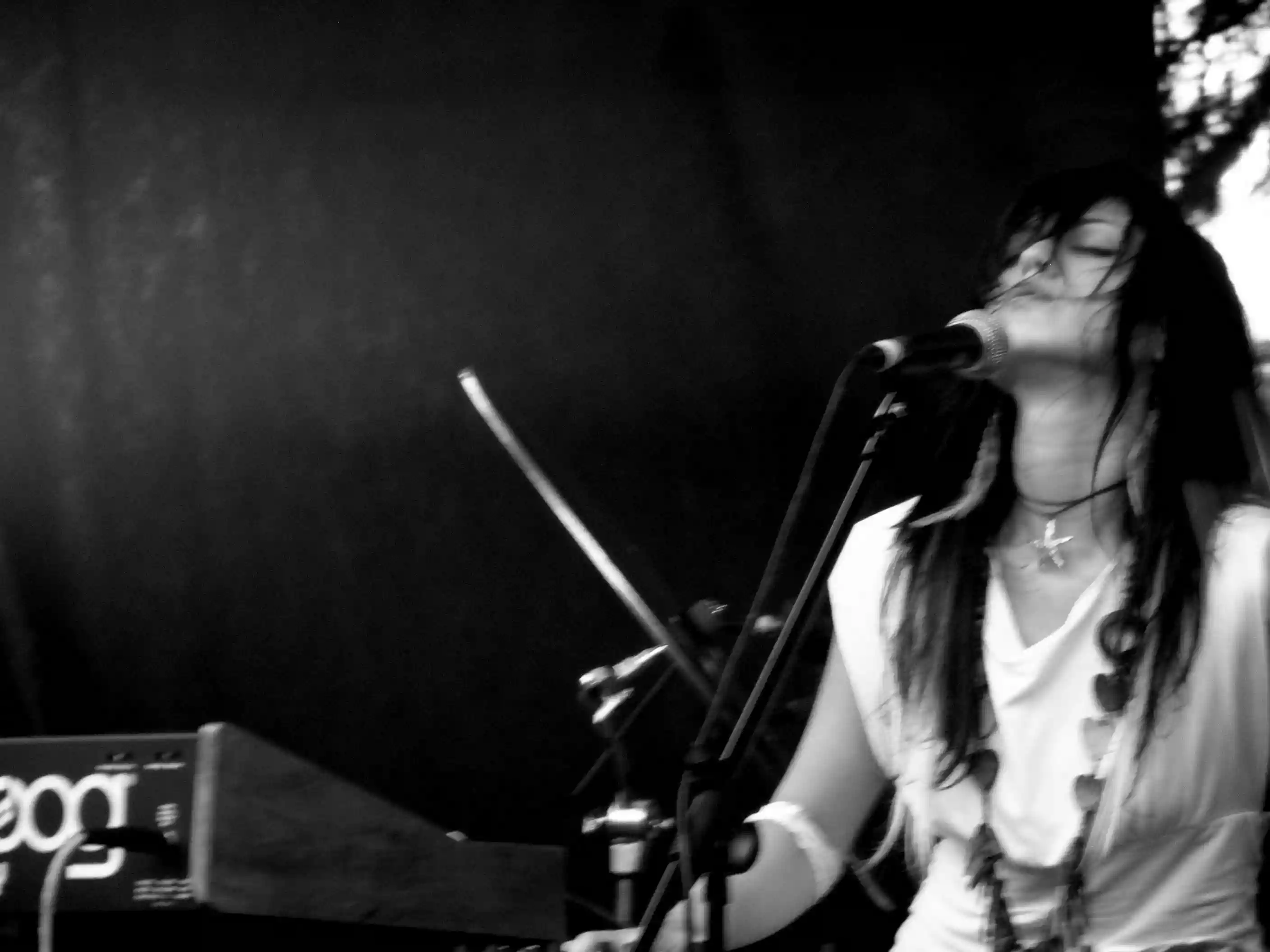 that immobilizes the gaze and auditory apparatus. She, in her shocking green t-shirt that must have thrilled all the gnats of the Rotonda, almost seems a surplus. The four chords of the keyboard are overshadowed by the trumpet and the percussionists (two of them); she moves on her wedges, but the voice has none of the clarity and crystalline liquidity of the much-loved (also by myself, to be clear) studio works. She seems more like Pj Harvey after three sleepless nights in front of an open window in the dead of winter, than a wandering Kate Bush among the stormy peaks.