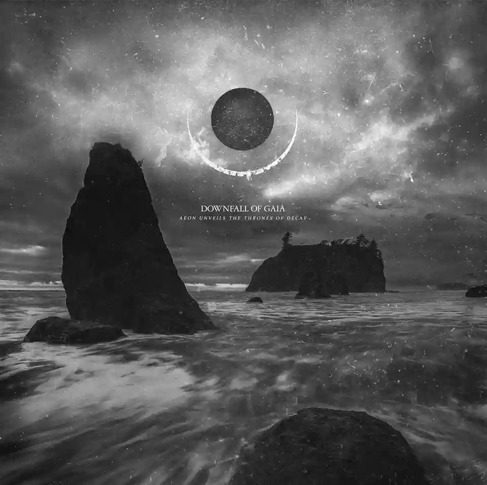 The intensity that invades from the very first jolts of "Aeon Unveils the Thrones of Decay" is magnificent in its desolate reality. An arid acknowledgment of all that time takes and eternally kidnaps, leaving the individual stripped of their inner weaknesses. Each passage through the seven compositions is a small narrative arc contributing to the overarching story and the obsessive and repetitive leitmotif of the platter. Because yes, the rides cut, slicing transversally the most excited moments with those of false calm constructed thanks to a decidedly inspired songwriting, which does not fall into clichés and that slowly enriches the career of Downfall of Gaia. The screams are harrowing, raspy, and with no hint of compromising release. Decadent and abrasive, they become the voice of a melancholy hidden behind the sense of powerlessness that time causes. Things change, the people around us change with the evolution of life, and there's a risk of ending up in a suffocating situation where familiar faces become strangers. One has the perception that everything slips from one's control, becoming elusive in the face of the perpetual machine of the ticking hands that move mercilessly. Thus, it is not uncommon for the pieces to follow this trend, where blinding outbursts are opposed by slowdowns and melodies that drag wearily toward the end. An alternation of looks at who one was, is, and will be, in an anxiety described by moments of oblivion with reminiscent shades of ambient solutions in the epicness that distinguishes the two closing tracks "Whispers of Aeon" and "Excavated". The latter instrumental and, for this writer, a true gem capable of elevating an album that in its compactness risks being too bewildering.
