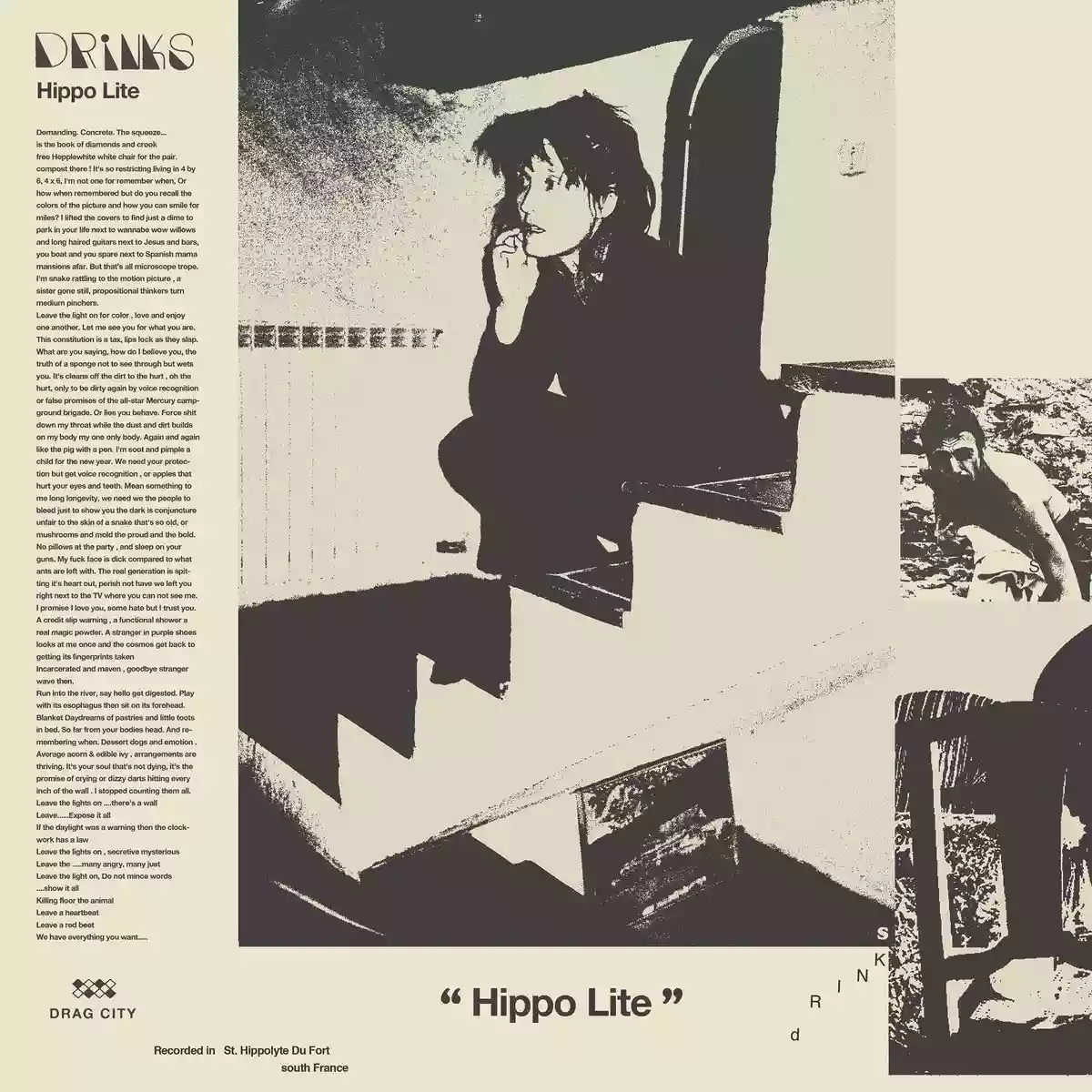 Indeed, an album like this is difficult to consider outside of its reference context. I mean, this work truly stems from the choice to "retreat" literally to a specific location away from the Californian daily life, and then this very choice, more or less consciously, ended up influencing the contents of the entire album. This is how "Hippo Lite" was born, the second studio album by DRINKS, the duo composed of Cate Le Bon and Tim Presley (White Fence) who retreated for a month during the recording stages to the town of Saint-Hippolyte-du-Fort in the south of France, in the region also known as "Occitania."