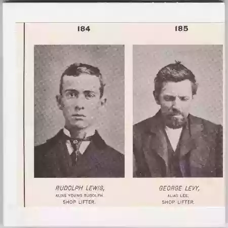 Data. Lewis was arrested in New York, on September 22, 1883, charged with stealing silk goods valued at one hundred dollars from Lewis Brothers' retail store at No. 86 Worth Street, New York. After posting his bail, he moved to Boston, where he was arrested for shoplifting and sentenced to eighteen months in prison, on November 19, 1883, under the name Rudolph Miller. He served his sentence on April 25, 1885, but was again arrested at the request of the authorities and taken to New York to answer for the silk theft.