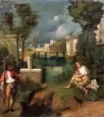 The Tempest is a small oil and tempera canvas measuring 83 x 73 cm. preserved at the Gallerie dell'Accademia in Venice. Among this artist's works, it is certainly the most famous, which will serve as an example for artists of every era.