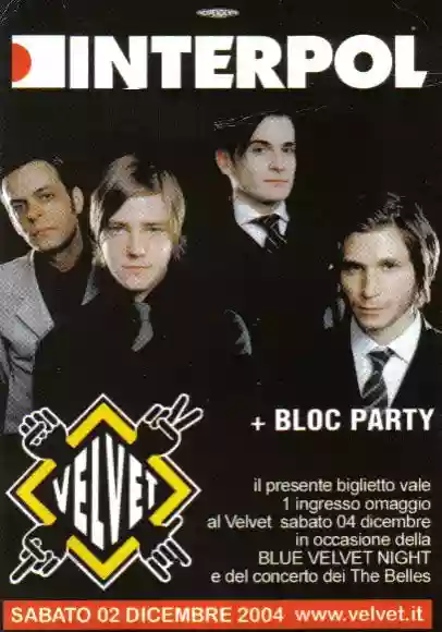 The only REAL negative note (I don't know if attributable to Interpol or the Velvet): the poorly positioned lights behind the band, which almost made it impossible to recognize them... perhaps this also contributed to fuel my Kubrickian disturbances, that is, never really seeing who was actually playing....