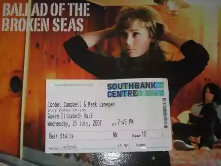 London, Wednesday, July 25, 2007. I exit the subway at Embankment, poke my nose above ground and notice it has started raining again. In front of me, the Thames flows; above, gray-black clouds make me think the rain will never stop. The air is fresh, I think of the heat in Italy these days and I enjoy the rain gradually soaking my Stone Roses t-shirt. I climb the bridge, head to the other side, and make my way towards the Southbank Center, Queen Elizabeth Hall. Inside, a screen reminds me that tonight Isobel Campbell and Mr. Mark Lanegan will be on stage. I enter early, take my seat, and watch people arrive. The average age is definitely high.
