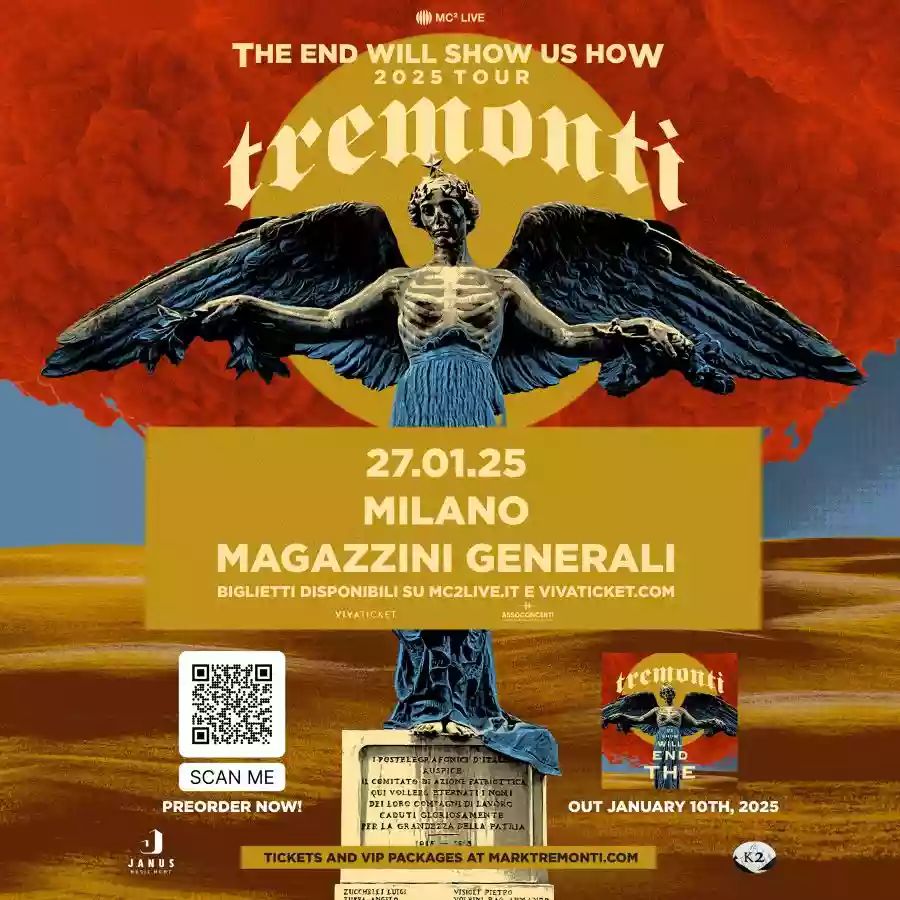 On January 27, 2025, two weeks after the release of the highly anticipated new work “The End Will Show Us How”, Mark Tremonti and his bandmates return to Milan at Magazzini Generali for the one and only Italian date of the eponymous European tour.