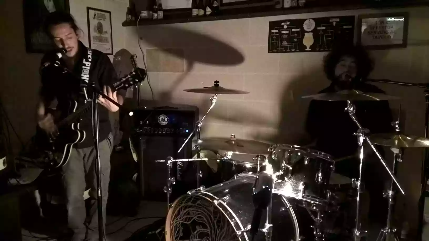 Coming from a self-produced debut album (Ora o mai più, 2015) and the May Day concert in Taranto, the Taranto duo plays in a more than spontaneous manner, showing they know their strengths and how to entertain their audience well. The acid solos of Davide Bianco and the strong rhythms of Fabio Cazzetta create a rock tension that surrounds every corner of the room, with rocky riffs and an engaging attitude, despite the limited space and not very generous volumes. In all of this, the band always manages not to take themselves too seriously, with Cazzetta, after sacrificing a wok and using it to play, pulling out Star Wars-like laser drumsticks that light up in the dark and allow for the execution of the last song in total darkness.