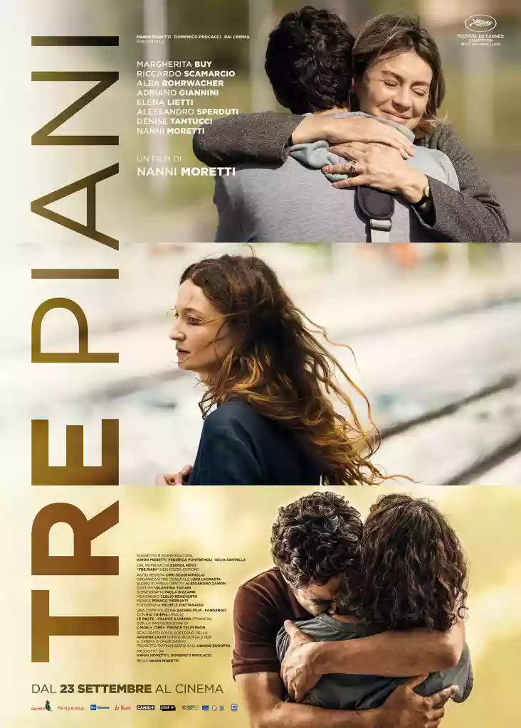 Without getting into the merits (as "Titane," awarded the Palme d'Or, has not yet been distributed), the fact remains that Moretti's latest work consistently continues the director's critical discourse about a certain bourgeois mentality (or petit-bourgeois) prevalent in modern society. The only novelty, if anything, is that it takes inspiration from the novel "Three Floors" by Israeli author Eshkol Nevo. The setting is the only variation: no longer a building in a residential district of Tel Aviv but rather an elegant three-story building located in the Prati district of Rome. Otherwise, the family units residing there are equally middle-class, united by various existential troubles that, while not apparent in public, make them nonetheless unhappy.