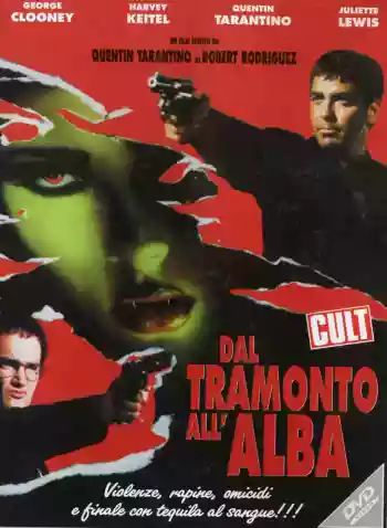 The film is essentially divided into two parts, one pulp and one splatter, where the Gecko brothers (Clooney and Tarantino), after a successful bank robbery (which is relative, considering they massacre people), take a family hostage to hide them inside their camper to reach Mexico, where they plan to hand over the loot to their current client. The meeting place is the Titi Twister, a bar for drunk motorcyclists and strippers that suddenly turns into a den of murderous vampires. Naturally, it all culminates in a bloodbath with severed limbs (because what's the fun otherwise?).