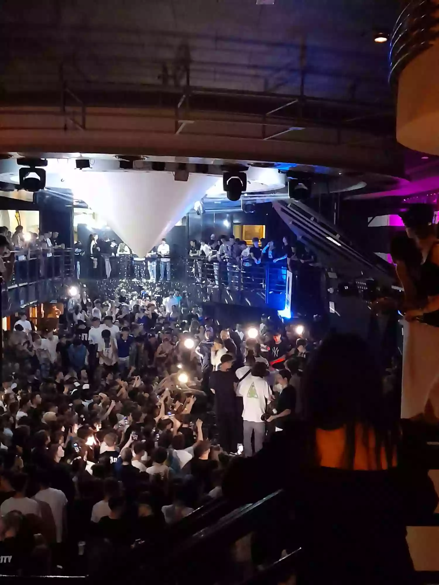 We entered at 9:30, a rookie mistake, as the venue was still half-empty, and the few people present were minding their own business. I attempted with nonchalance to ask for a beer to ease my nerves; the prices were criminal (5€ for a bottle of water!), and the bartender, not to offend me, advised me to go to another balcony since it was warm there. The security was intimidating; they were stocky and tattooed, and one of them sternly told me to throw away the redbull can, which could become a weapon.