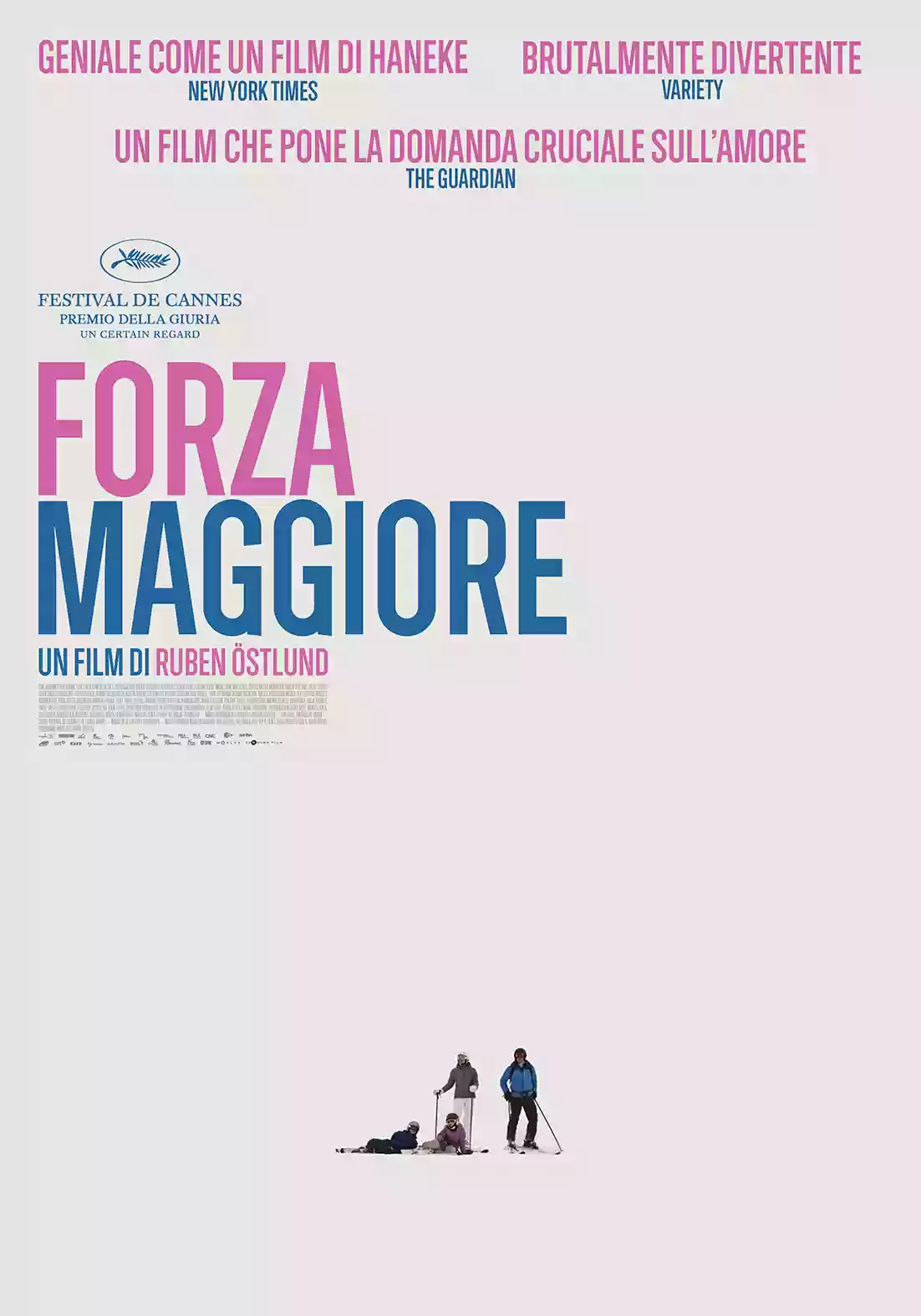 During a lunch on the terrace of a high-altitude refreshment structure, a static frame shows the family at the table in the foreground, with a hint of avalanche in the background. It is actually a controlled explosion, the kind that eases the passage of the slopes by making the excess snow collapse down to the valley, but the impression is that the avalanche is getting closer and closer to the refreshment area, and people's reactions quickly shift from amused interest to full hysterical panic. Nothing serious actually, just an impression. Small problem: the dad, at the crucial moment, gets up, grabs his iPhone, and takes off, leaving the mother with the two little ones in her arms, visibly frightened and shaken.