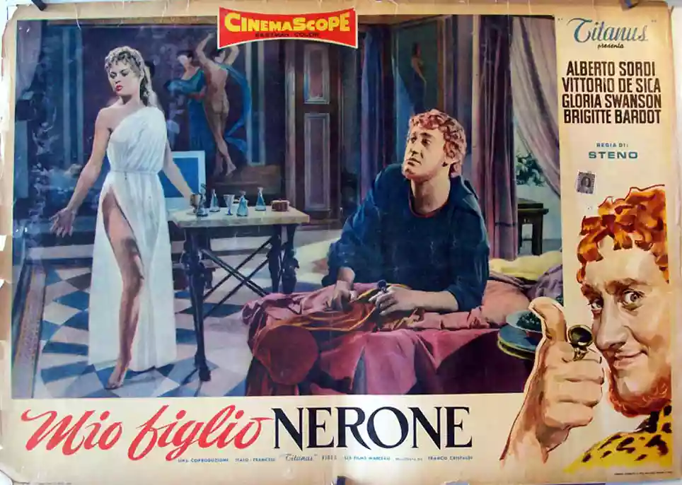 The stormy relationship between the actors, especially between Swanson and Bardot, didn't prevent Steno from achieving a good result, particularly regarding the accuracy of the staging and a script that was even too refined for the satire of a genre that often had little refinement. Swanson, of course, disowned the film, saying it was one of the worst things she had ever shot. Sordi likewise considered Mio figlio Nerone one of his less beautiful films for a long time; and it is said that at the premiere at the Venice Festival, he got up halfway through the screening and left.