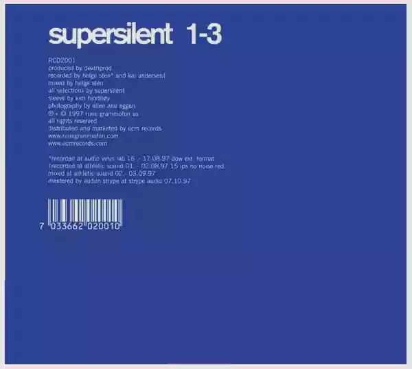 Let's get to the point (solid point?): Supersilent "1-3" is the first delivery of the quartet, released in 1997 for the excellent Rune Grammofon (to which Supersilent are permanently settled), and as the name suggests it contains the discs 1, 2, and 3. The serial listening is devastating: the amount of sound cues is nothing short of monolithic, the effect is alienating and unsettling. Each disc, each track is an entire world to explore far and wide (more and more times, to reveal new chic things each time), the pulses can be jazz, noise, trip-hop, even rock if you like, noisy, minimalist or maximalist, but what do these names matter? We are exploring something unknown.