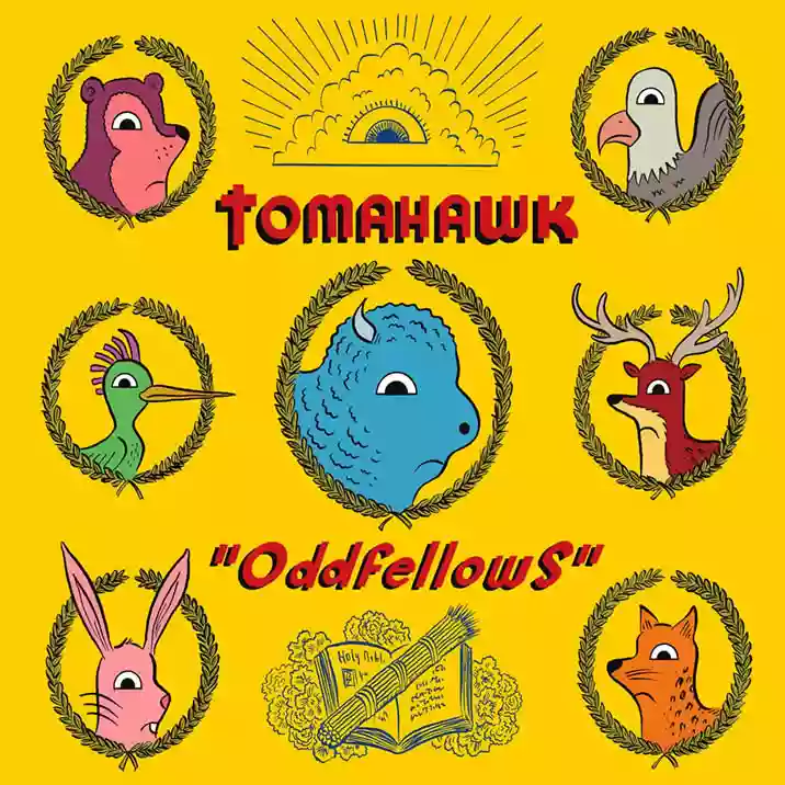 Tomahawk is what many would call a supergroup because of the distinguished figures from notable bands within a certain scene present in its lineup. But in this case, we will use super with the meaning of excellence due to the presence of: Mike Patton (do you want me to write all the bands he's been part of in brackets, or will you prove that you are worthy of being part of the large group of people who already know that this guy has been everywhere alternative music was from 1989 onwards?), Duane Denison (the gentleman on the six strings in the seminal band dedicated to skewed violence called The Jesus Lizard), John Stainer (many of you will remember his fierce hits on those gentle figures that were the Helmet, others instead on the surgical rhythms of the electro-disruptive combo that are the Battles, did you say nothing) and Trevor Dunn (again, the list is quite long, but this jester found himself at the scene of the crime with Mr. Patton with the Mr. Bungle and the Fantômas in addition to elegant and pop excursions with his Mad Love, and here he takes the place of the outgoing, for quite some time now, Kevin Rutmanis, an excellent former bassist of another little band called Melvins (strange story, Mr. Dunn is now also part of the lite version of the trio, sometimes life...)). Now that the proper introductions have been made, let's talk about music. The band is here with their fourth studio work preceded by a first self-titled album, definitely strong and powerful, a second "Mit Gas" that captures the group at its expressive peak, a third daring experiment named "Anonymous" that presents songs drawn, and reinterpreted in our own way, from the tradition of Native Americans, perhaps to stay true to the aesthetics of the band's name or who knows for what other reason, which, in my opinion, had only the title as anonymous, in short, they could have done better. At this point I didn't know what to expect from this "Oddfellows", given the unpredictability of the master builder Michele, the only thing was to give it a try. By association with the artwork, a purely mental association of mine, I said to myself "ok this comic-like graphics might bring me back to the beauty of that "Suspended Animation" which was of the Fantômas creature", where there it was assigned to the Japanese Yoshitomo Nara, here the task of giving an image to the music is entirely of the Italian or at least, born in Italy but of American nationality, Ivan Brunetti, who reinterprets the lodge's images as cartoons putting funny animals with downturned mouths instead of the serious faces of the components. My expectations were certainly not betrayed.