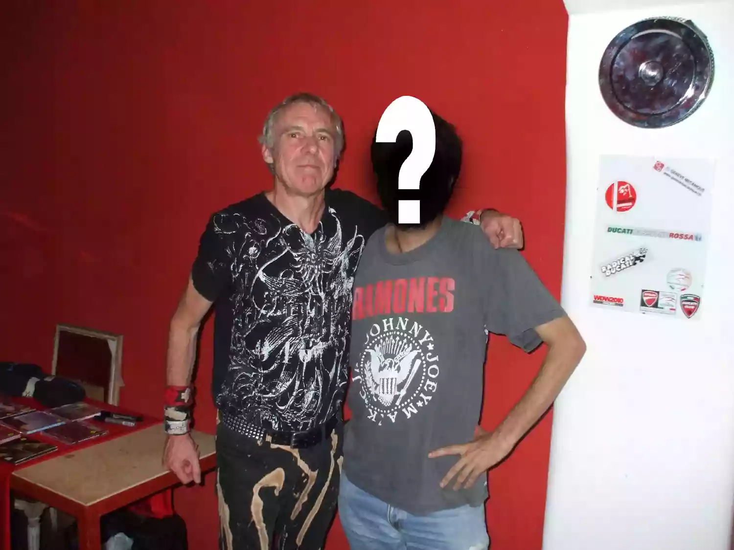 A great person TV Smith, he enters the venue where he has to play accompanied by John Plain, the guitarist of the Boys another historic English punk band, sets up his stall with records and books and proves to be very approachable and smiling with everyone (unfortunately few) who approach him for a chat, to buy something or take some photos.