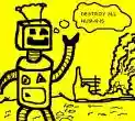 2) The trauma. Who knows why all heroes have trauma, more or less they’ve all been through some trouble. One had an alcoholic father who whipped him and then abused him, another's mother was kidnapped by aliens, another's grandfather was assaulted by the Russians. It never happens to them, always to the relatives: if I have a kid, I want him to be a thief. In our movie, the hero has trauma because he hates robots since, at an unspecified unlucky time, a guy throws him into the sea with a little girl, and when they are about to perish, the robot (once symbolized Russia, now I don’t know) tries to save him, and the hero cries, “take the girl! The girl!” but the communist manages to save only him, so the hero hurls insults at him and scorns him forever, him and all his kin. The music of “1001 robots” starts, then the violin of “Dead robot walking” and as they walk, they are hitting 2002 balls.