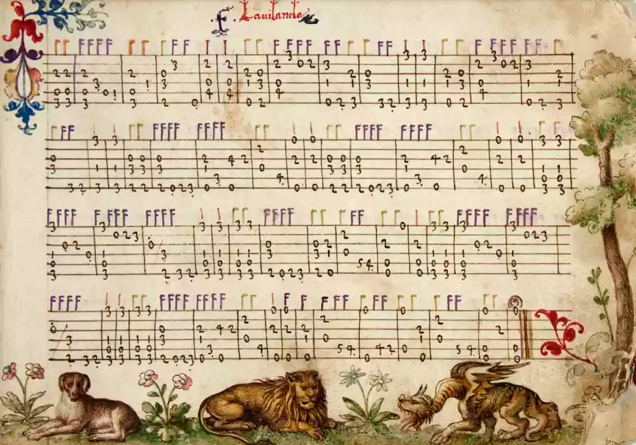 Above all, it is known that at the end of the nineteenth century a manuscript of lute compositions appeared in the antique market, finely decorated on every page with miniatures of plants and animals: it was, and is, the only copy of his compositions, which have survived by pure chance. The booklet moved from England to Florence, also passing through the hands of Leo Olschki, who had just a few years earlier founded his publishing house, and ended up at the Newberry Library of Chicago, where it has remained from 1904 to this day. But the reason these antiquarians were interested in it lies not at all in the transcribed music.